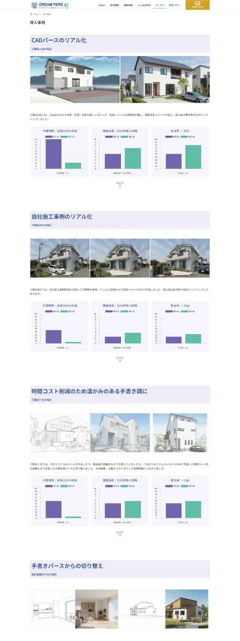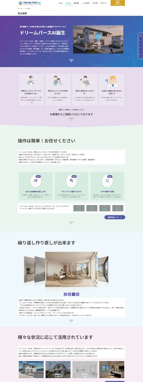 この度、厚木市の株式会社キャドネット様の革新的なAIサービスをご紹介するウェブサイト「ドリームパースAI」の制作を担当させていただきました。